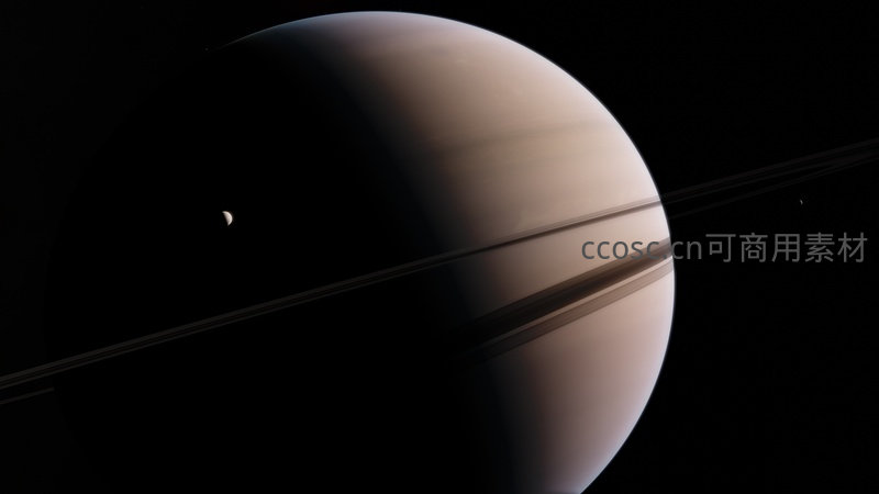土星一半沐浴在光明中,另一半隐于黑暗,环带横贯其间,营造出强烈的视觉对比与神秘氛围。