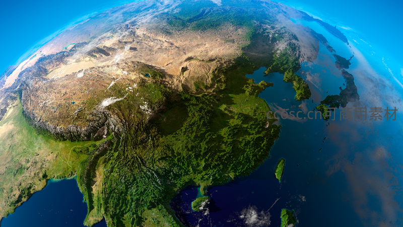 从太空俯瞰地球,亚洲大陆的壮丽地貌尽收眼底,绿意盎然的平原与苍茫的高原交相辉映。