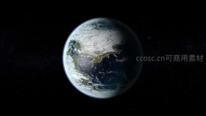 在无垠黑暗的宇宙背景下,地球如一颗孤独而美丽的蓝色水晶,静静悬浮,充满宁静与希望。