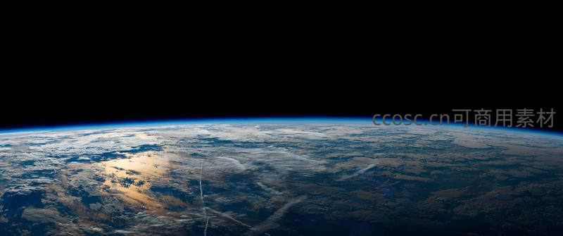 从太空俯瞰地球,蔚蓝的大气层勾勒出优美的弧线,阳光洒在云海之上,展现星球的宁静与壮阔。
