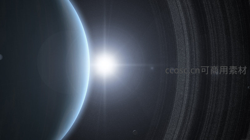 一颗拥有巨大光环的神秘行星正沐浴在遥远恒星的耀眼光芒下,其冰冷的表面与炽热的光源形成强烈对比。