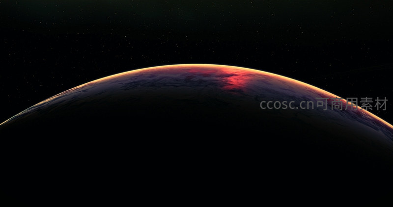 从太空中捕捉地球曲率上的日出瞬间,绚烂的红光沿着地平线蔓延,照亮了沉睡的星球边缘。