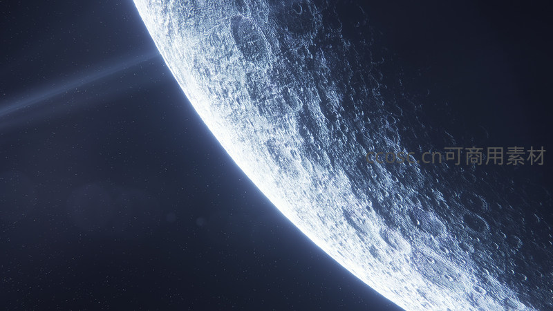 近距离捕捉月球表面崎岖地貌,环形山与阴影交错,展现荒凉而壮美的外星地质景观。
