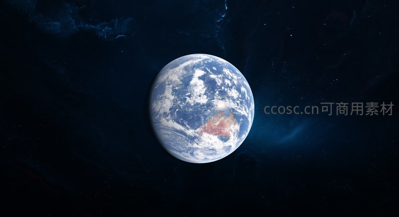 深空中的蔚蓝地球,云层与大陆清晰可见