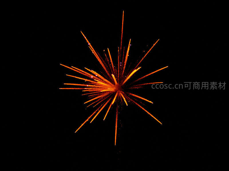 橙色烟花如星芒炸裂,点亮夜空