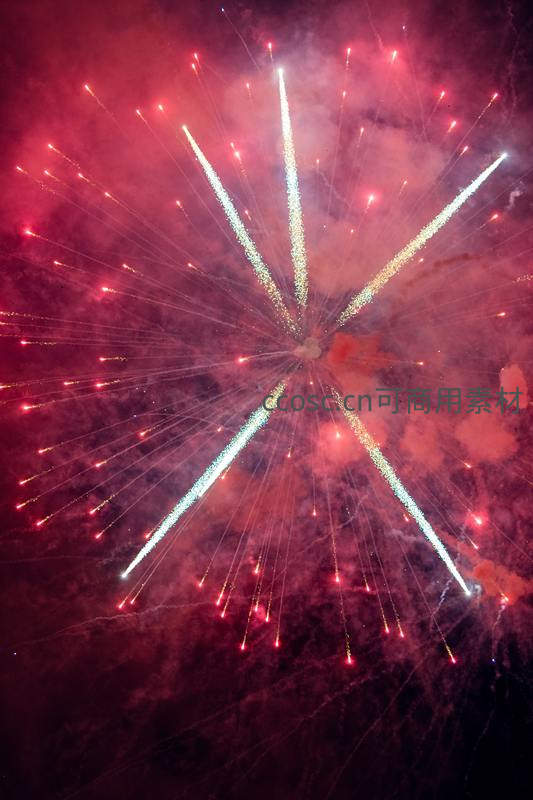 绚丽多彩的烟花在深邃夜空中瞬间绽放,如花朵般绚烂夺目,照亮了整个天际,营造出盛大而梦幻的节日氛围。