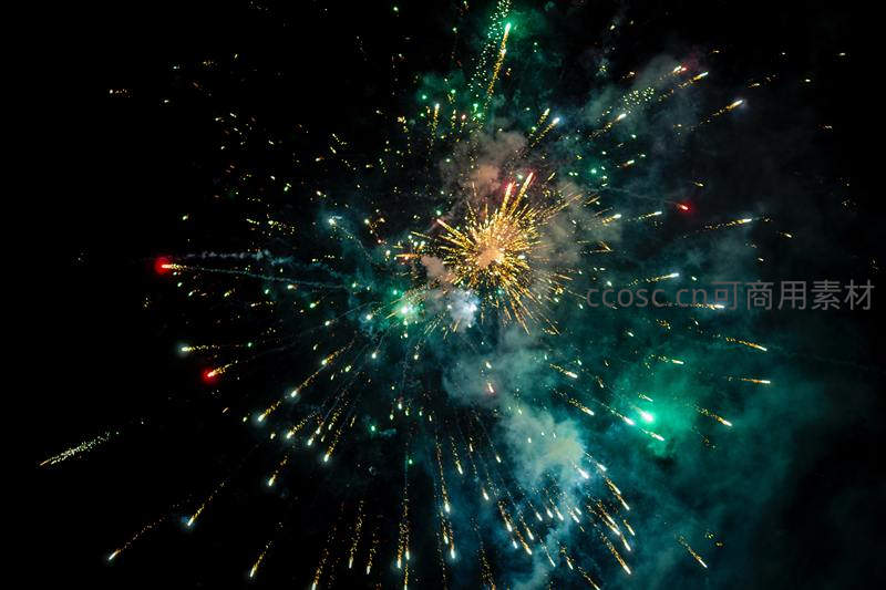 深邃夜空中的绿色烟花绽放,如星云般绚烂夺目