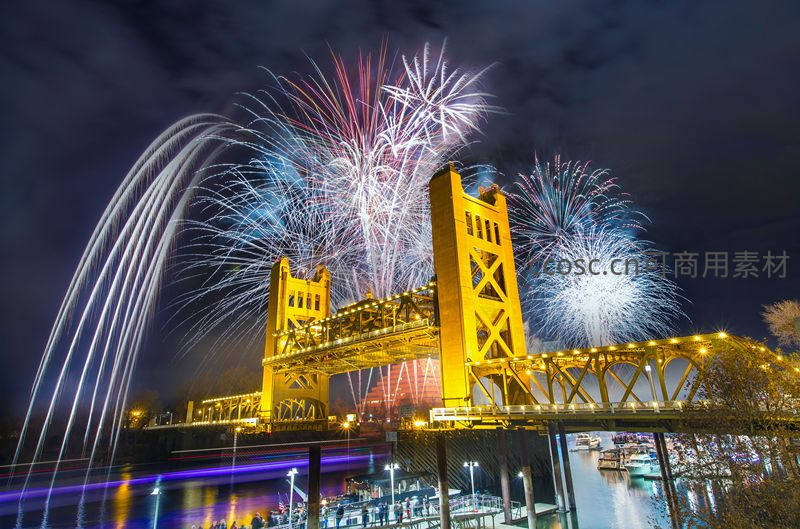 大桥夜空下的烟花盛典