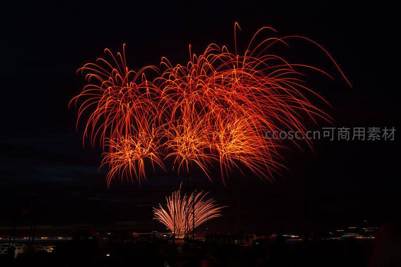 夜空中的橙色烟花盛放