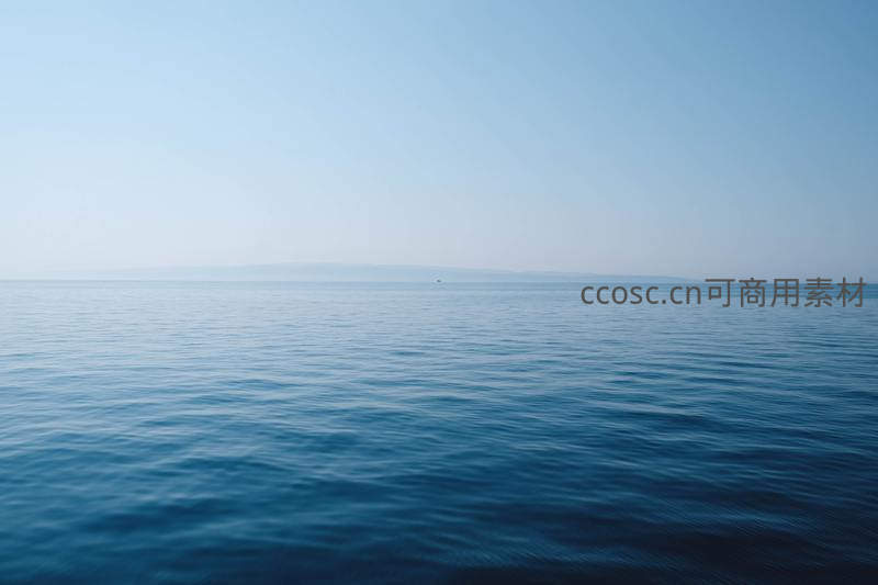 湛蓝的海水与清澈的天空在远处融为一体,平静的海面泛着微光,带来无限的宁静与遐想。