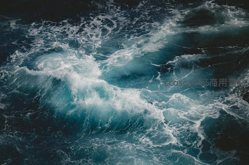 深邃海面巨浪翻滚,白色泡沫飞溅,展现出海洋原始而磅礴的力量与神秘的暗色调美感。
