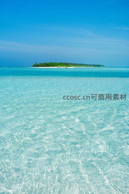 清澈见底浅滩遥望绿意小岛