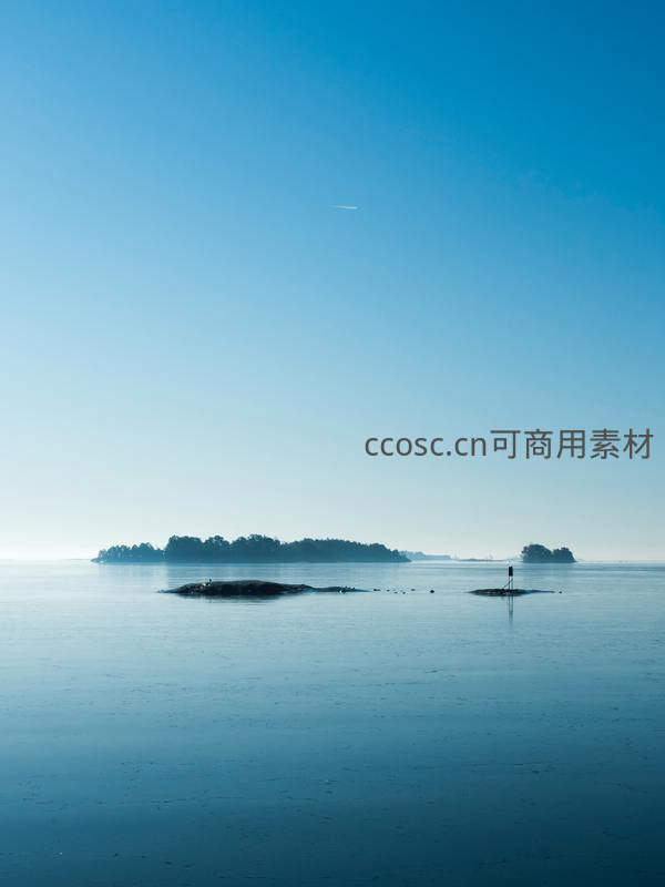 薄雾笼罩的湖面上,几座孤岛若隐若现,水面如镜,营造出极致宁静的诗意画面。