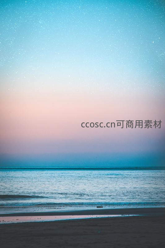 星河入梦夜海边,粉蓝渐变醉人心