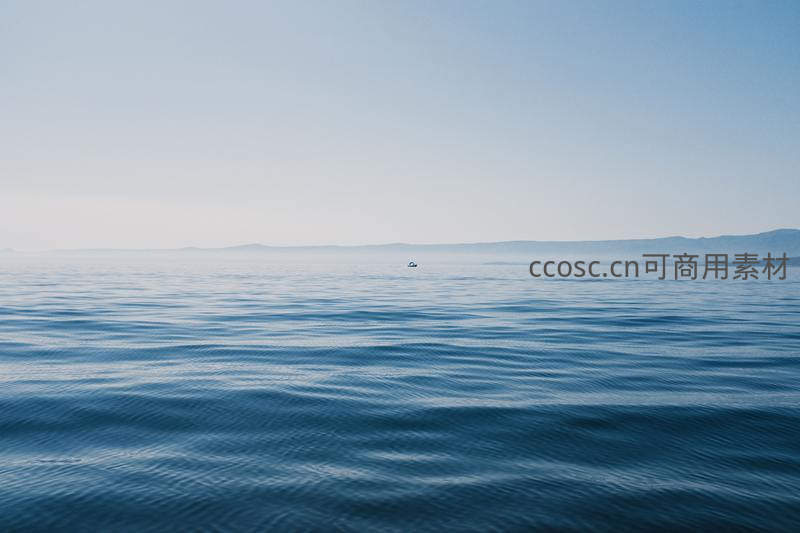 薄雾轻笼的广阔水域,天水交融难分彼此,远处一艘小船若隐若现,带来诗意般的空灵与沉静氛围。