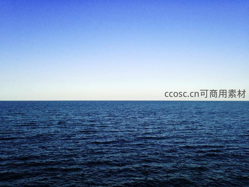 平静无垠的深蓝色海洋与渐变的澄澈天空在地平线处完美交融,画面极简而辽阔,带来心灵深处的宁静与开阔感。