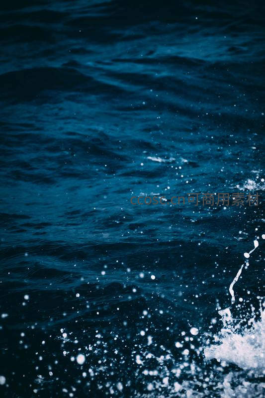 深蓝色的海面泛起细微波澜,晶莹的水珠在阳光下飞溅,如同夜空中的繁星,营造出静谧而富有生命力的视觉效果。