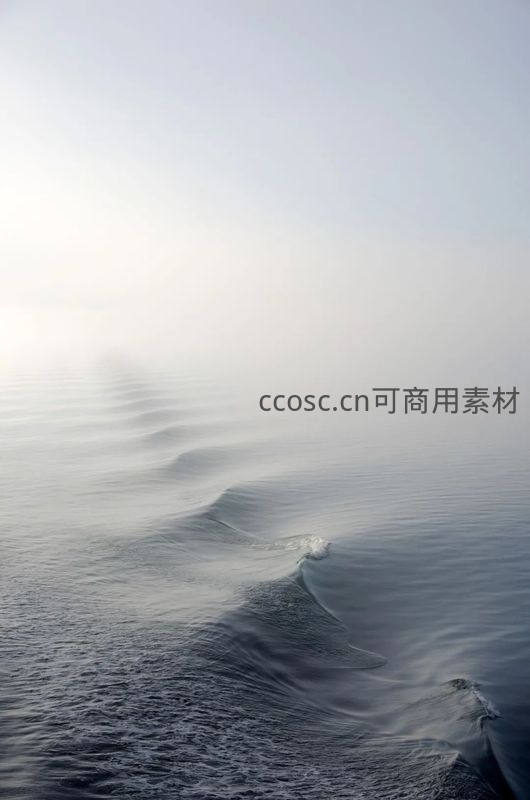 薄雾轻笼海面,层层波纹如丝绸般延展,光线柔和,营造出梦幻般的静谧意境。