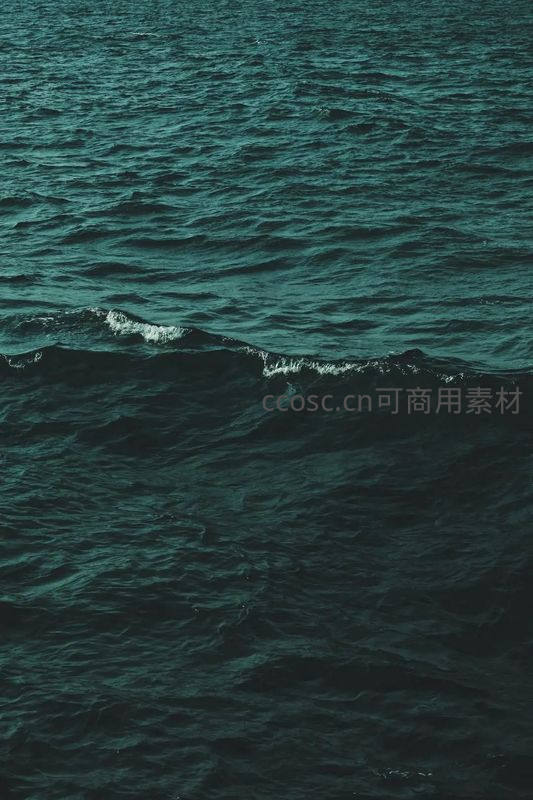 深绿色海水表面泛起连绵波浪,白色浪花点缀其间,展现海洋深邃而内敛的能量流动。