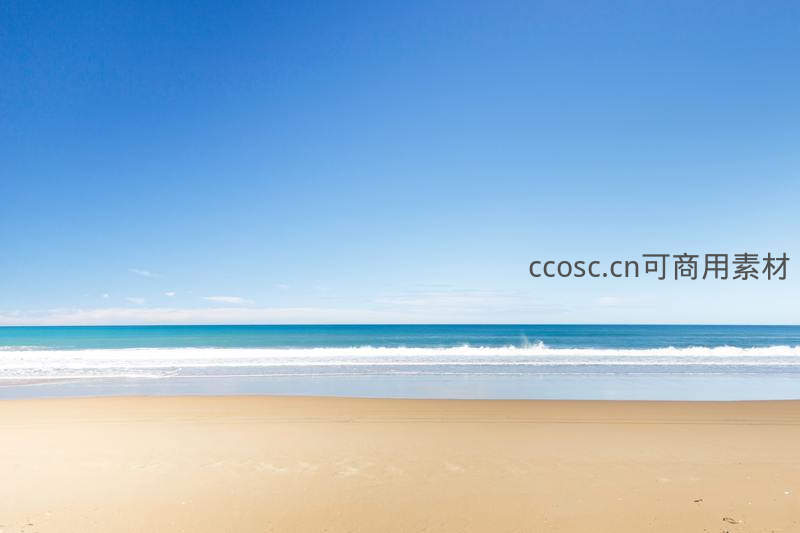 在纯净无瑕的蔚蓝天空下,细腻的金色沙滩延伸至碧蓝大海,轻柔的海浪拍岸,营造出宁静惬意的度假氛围。