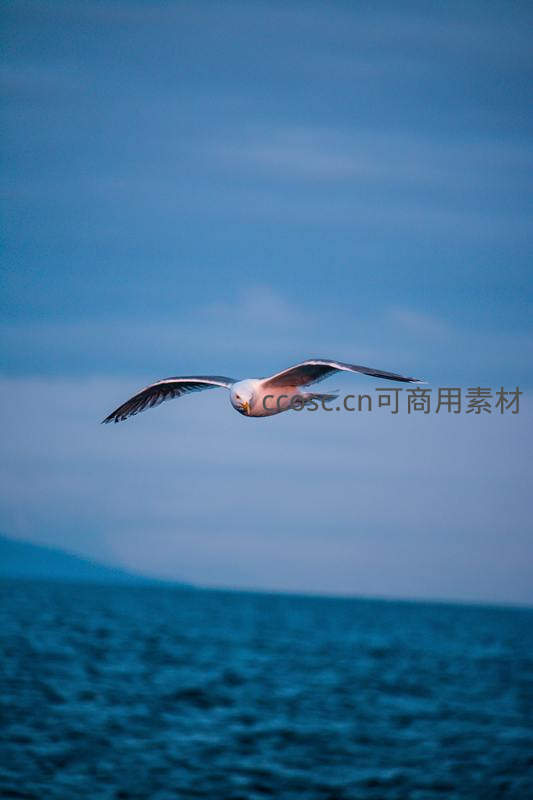 海鸥翱翔于辽阔海天之间