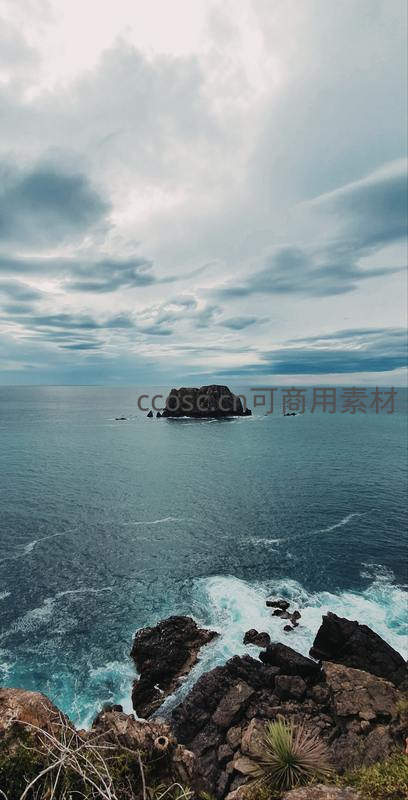 阴云密布下岩石海岸与孤岛的苍凉之美