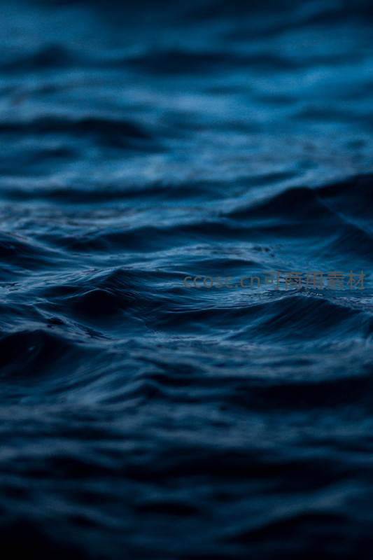深蓝色的海面波光粼粼,细腻的水纹在光影下起伏,展现出海洋的静谧与力量,引人沉思。