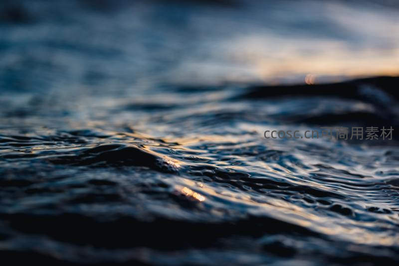 在黄昏的柔和光线中,微小的水波起伏不定,反射出细碎如星的金色光点,营造出神秘而迷人的氛围,定格了大自然瞬息万变的光彩。