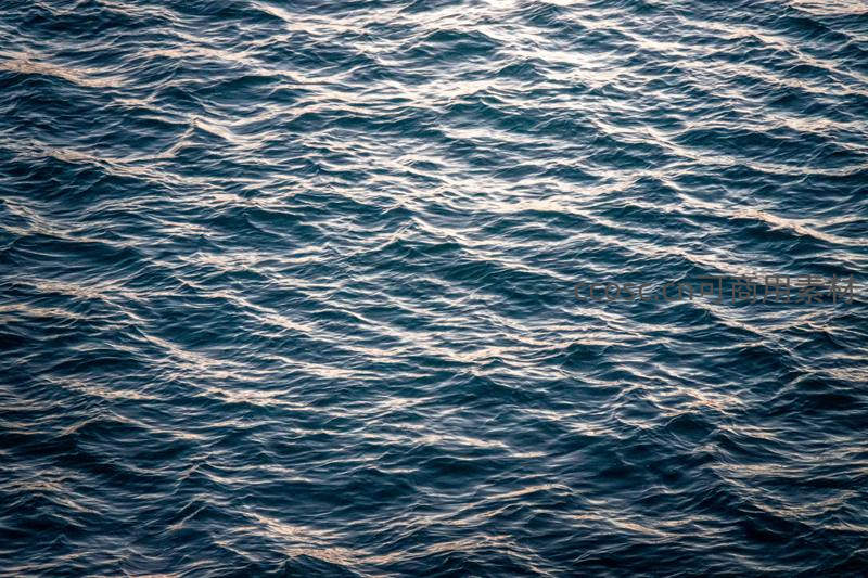 近距离捕捉深蓝色海面上细密的波纹,阳光在起伏的水面上反射出闪烁的光带,呈现出富有动感和质感的自然纹理。