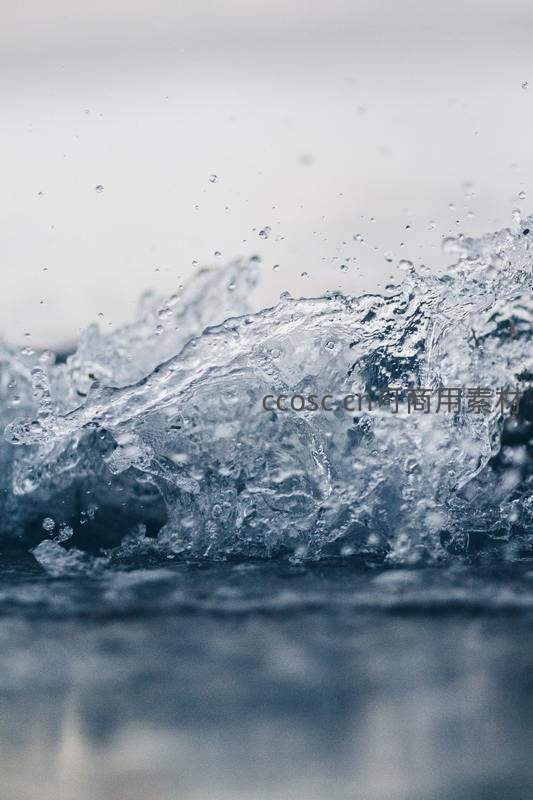 高速快门捕捉水花四溅的刹那,每一滴水珠都清晰可见,展现出水流撞击时迸发的力量与自然的律动之美。