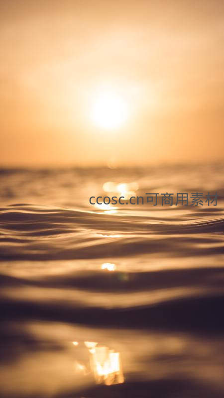 夕阳西下,暖金色光芒温柔倾泻于起伏的海面上,粼粼波光如碎金般闪烁,营造出静谧、浪漫且充满诗意的黄昏氛围。