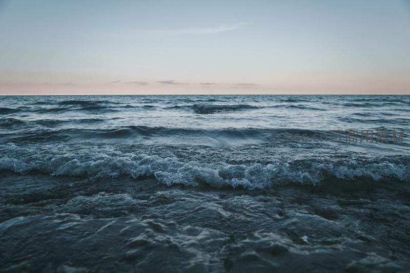暮色中的海浪温柔地拍打着岸边,泛起层层白色泡沫,传递着大海的宁静与力量。