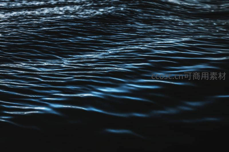 深色的水面在微光下泛起层层细密的涟漪,幽蓝的光泽与暗影交织,构成一幅静谧而富有质感的画面。