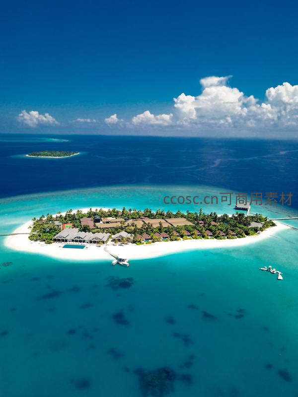 碧海蓝天中的热带度假岛航拍