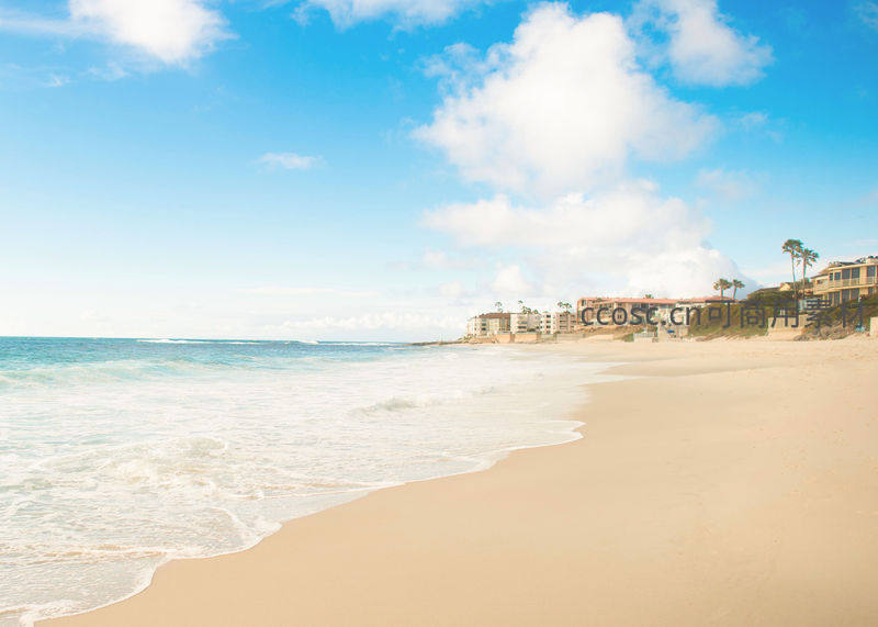 温柔的海浪拍打着金黄色的沙滩,远处的悬崖上错落有致地分布着几栋海滨别墅,在蓝天白云的映衬下,构成一幅宁静而奢华的滨海画卷。