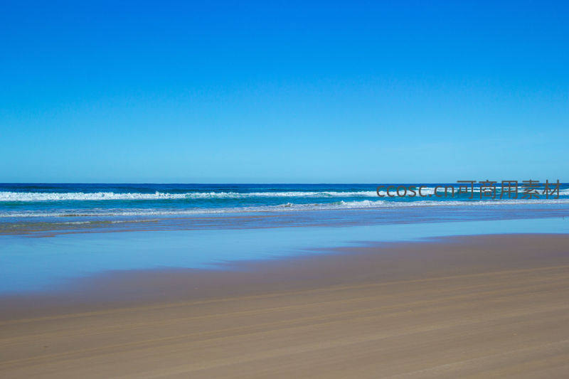 碧空如洗,海浪轻吻湿润沙滩