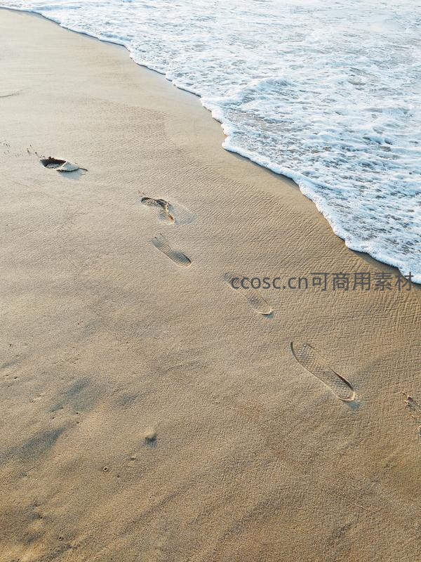 潮水轻抚沙滩,足迹渐行渐远