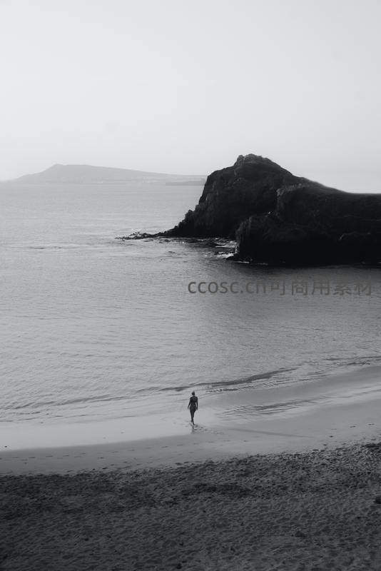 黑白影像中的孤独海岸