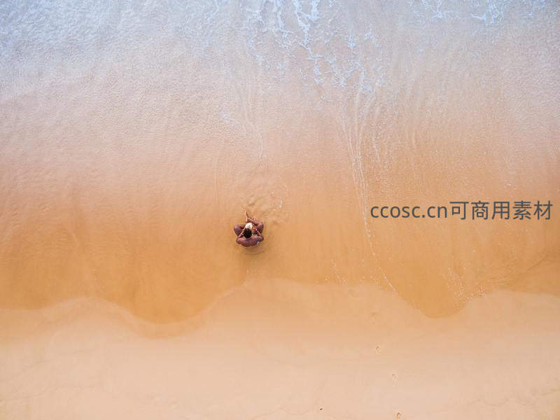 从高空俯瞰,一对情侣在潮水边缘深情相拥亲吻,细腻的浪花如丝带般环绕他们,定格了海边最温柔动人的爱情瞬间。