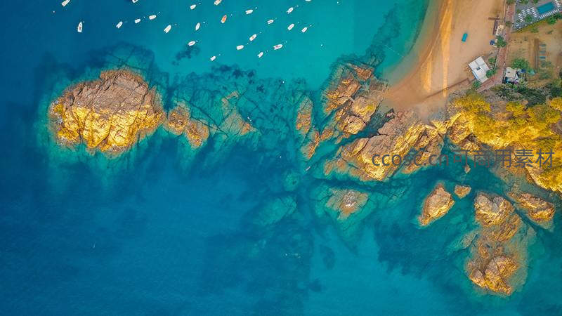 金色礁屿航拍,碧海白帆点缀