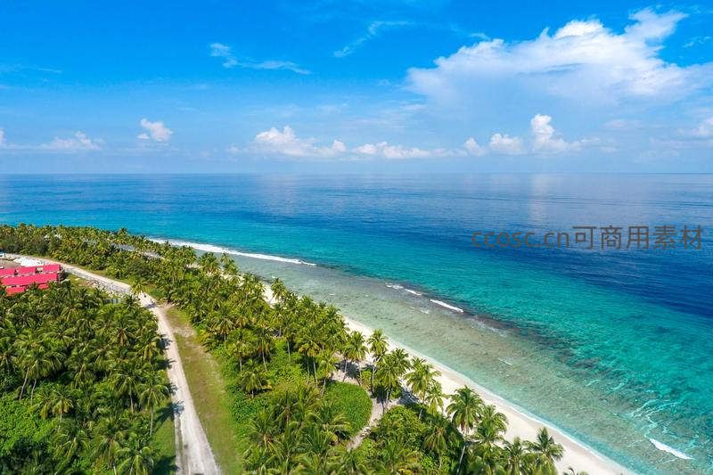 马尔代夫海岛椰林白沙与蔚蓝大海
