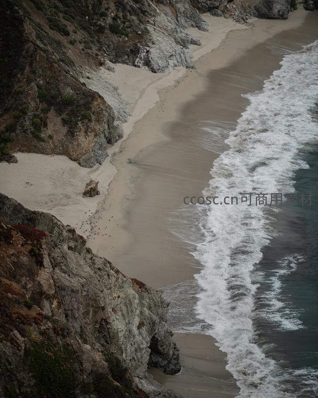 悬崖海岸线,巨浪拍打沙滩的原始之美