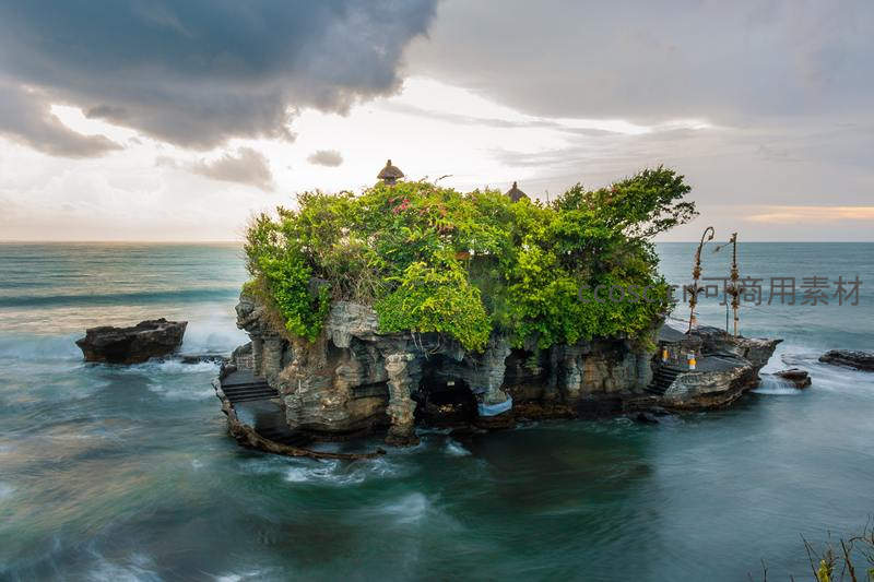 巴厘岛海神庙在夕阳下的神圣剪影