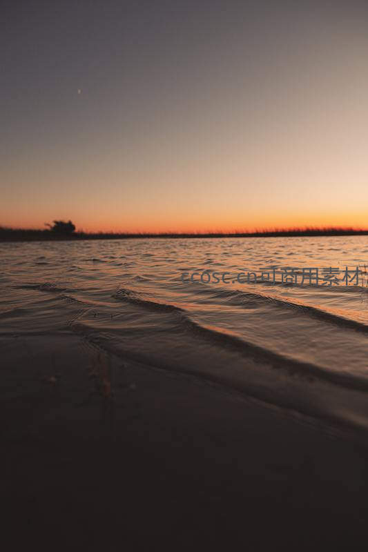 夕阳西下,湖面被染成温暖的橙红色,微波荡漾,远处天际线模糊,带来极致的宁静与诗意。