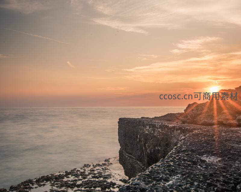 夕阳熔金洒满嶙峋海岸悬崖