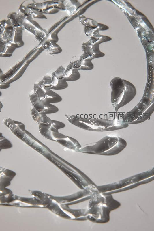 透明凝胶在光滑表面蜿蜒流淌,光线穿透其内部,折射出晶莹剔透的质感和丰富的光影层次。