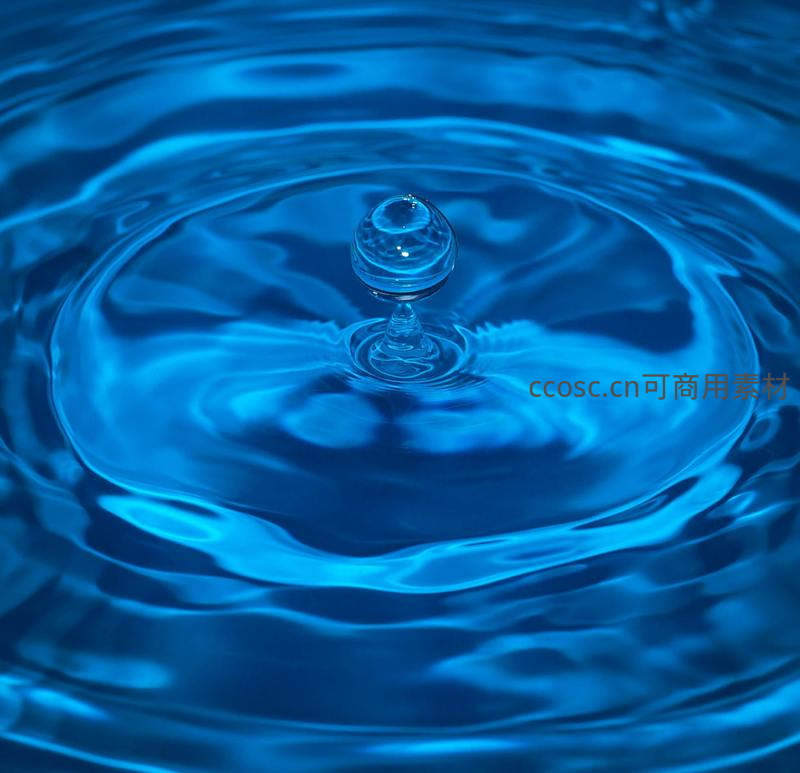 水滴悬停于蓝色涟漪中心