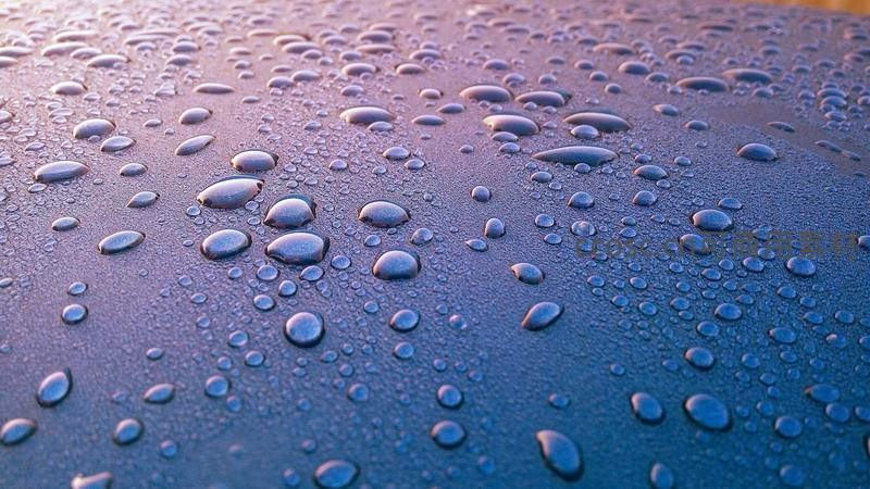 清晨的阳光洒在深色车顶,无数细小露珠如珍珠般散落,折射出蓝紫渐变的光泽,静谧而美丽。