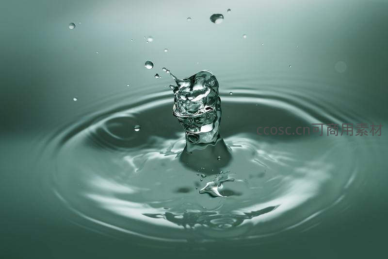 一颗晶莹水滴坠入平静水面,瞬间激起完美的冠状水花与同心圆涟漪,捕捉了液体动态美学的极致瞬间。