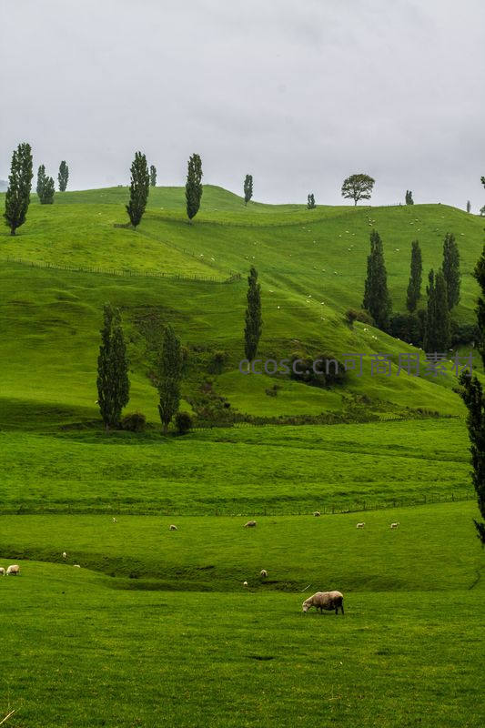 绿野仙踪:绵延起伏的青翠山丘与悠然羊群